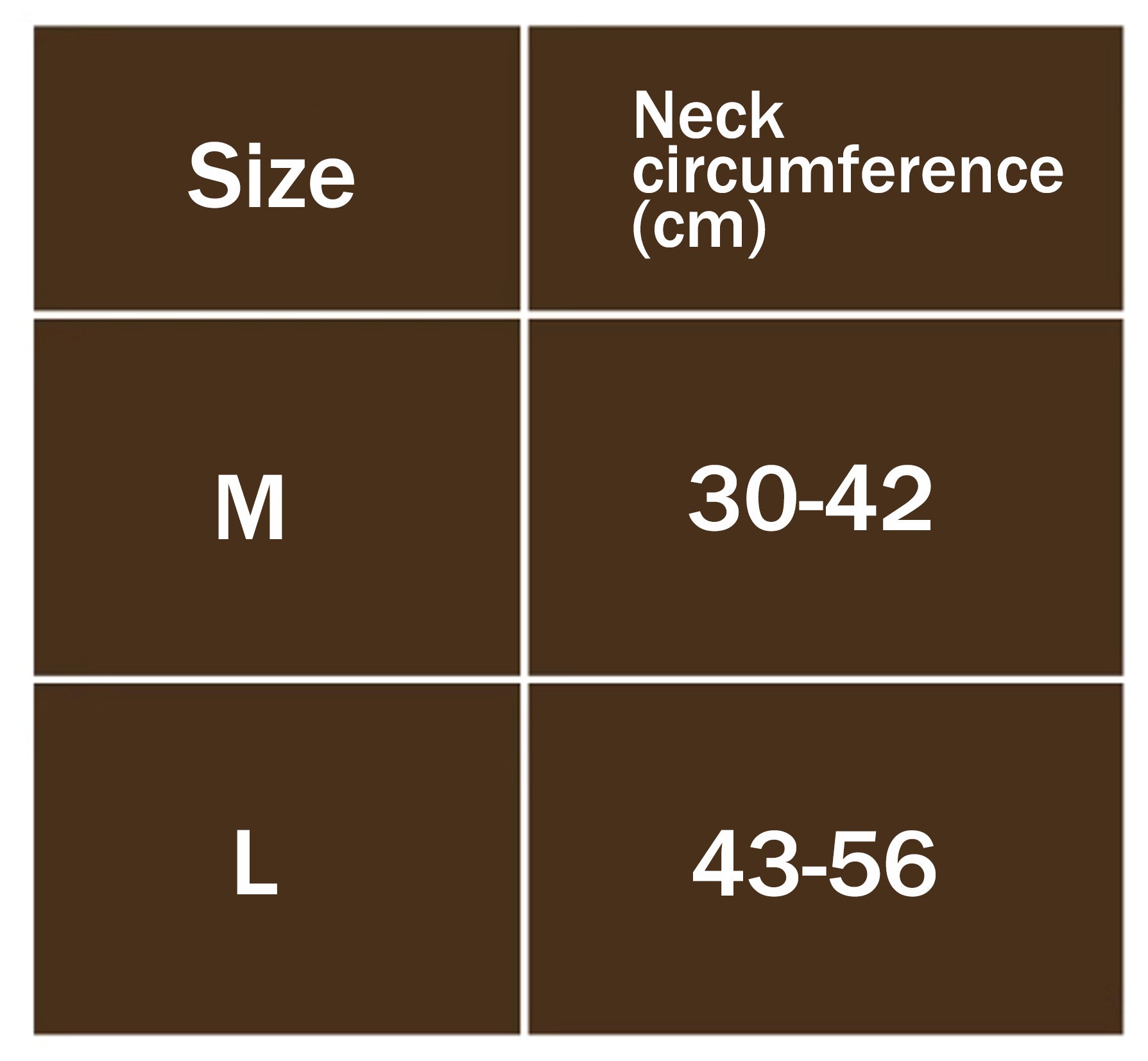 In order to provide a better user experience, we have redesigned the M size, which is suitable for neck circumferences of 30-42CM. The L size is suitable for neck circumferences of 43-56cm.