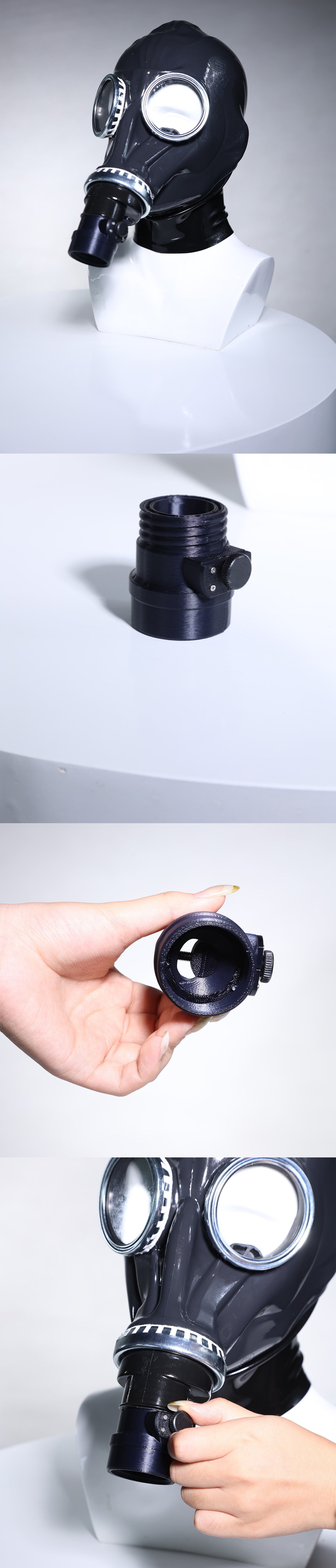 This product is designed for fetish use only. Improper use or unauthorized modifications may pose significant risks to health and safety. It is strongly advised to always use the product under supervision and ensure the airway remains clear and unobstructed. Avoid excessively tight clothing or accessories. This multi-functional mask is not intended for military, civilian, or air pollution protection purposes. Do not close the threaded connections during use to maintain adequate ventilation.